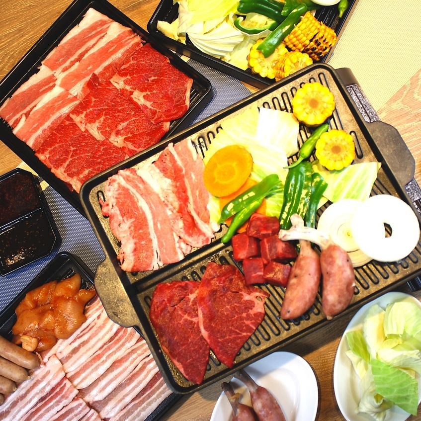 バーベキューコースに「牛たん6枚・海老5匹・ホタテ3枚」が追加された贅沢なコース!噛みしめるたびに口いっぱいに広がる肉の旨味を是非お楽しみ下さい★皆様で沢山食べて飲んで笑って、心に残る素敵なひとときをお過ごしください!!※写真は一例です。